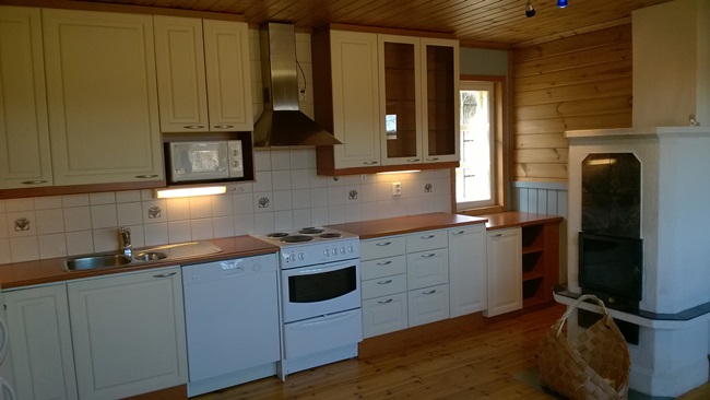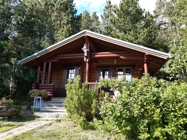 Arovuokko-mökissä on tupakeittiö, kaksi makuuhuonetta sekä wc- ja suihkutilat.
